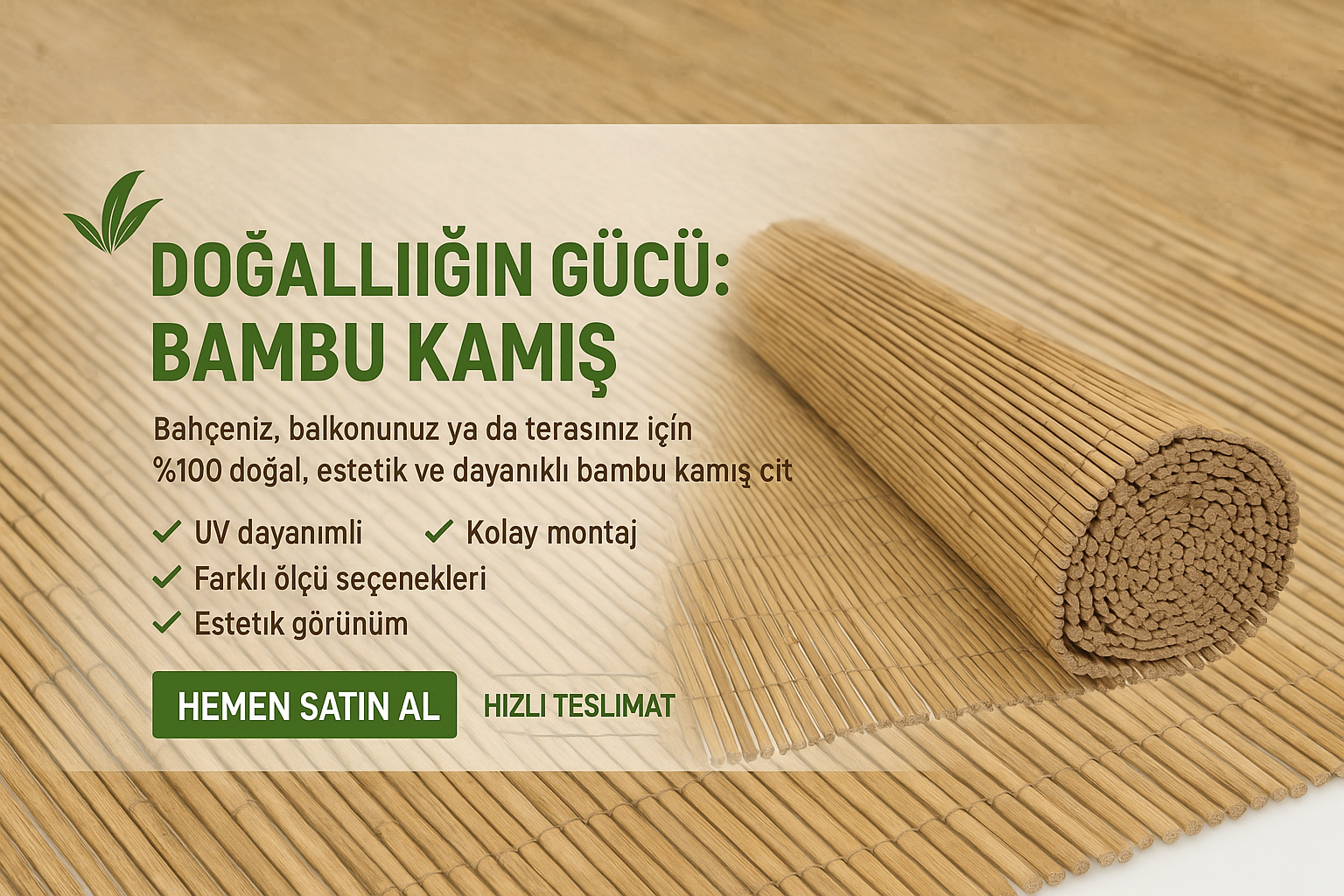 100x400 Dekoratif Doğal Bambu Kamış Hasır Bahçe Çiti- Gölgelik Hasır -balkon -tavan Dekorasyon 100x400 Tek Ebat 5 x 1